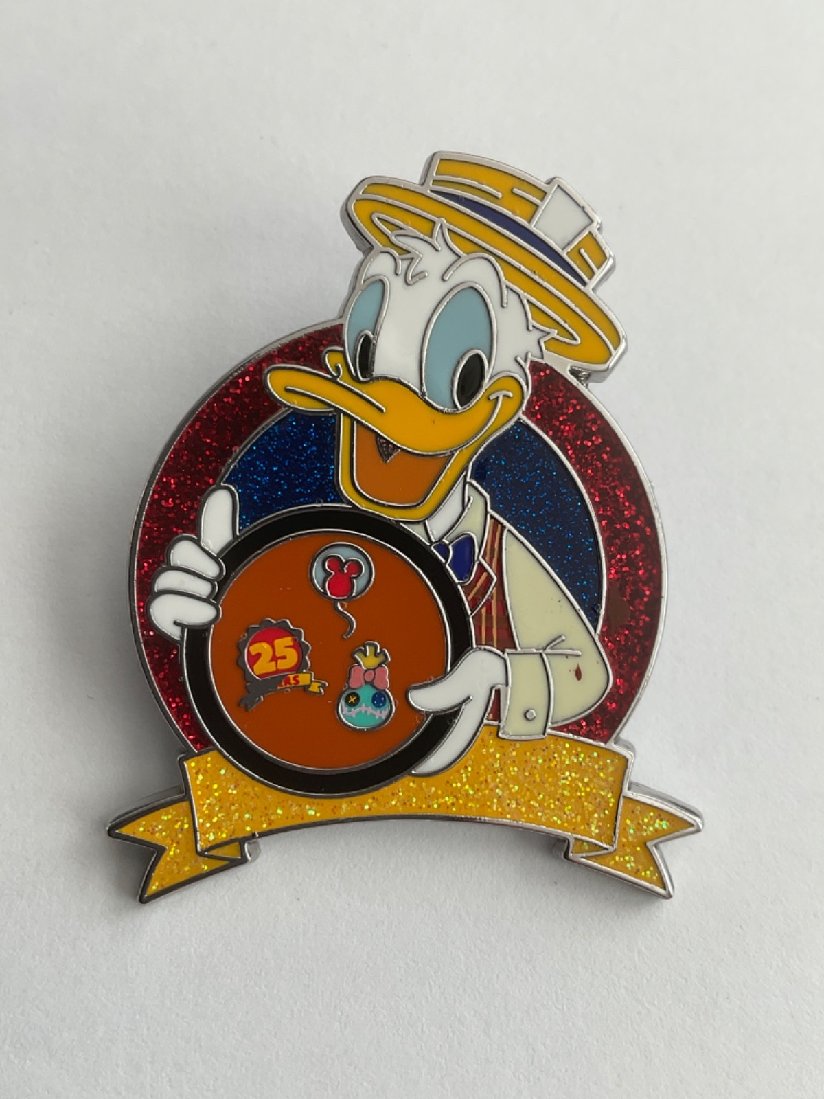 Donald Dressed as Scoop Holding Board Celebrating 25 Years Disney Pin F5
