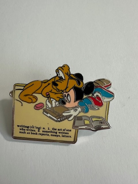 2001 DLR Back to School Pin Series Writing Pluto & Mickey Mouse Disney Pin D8