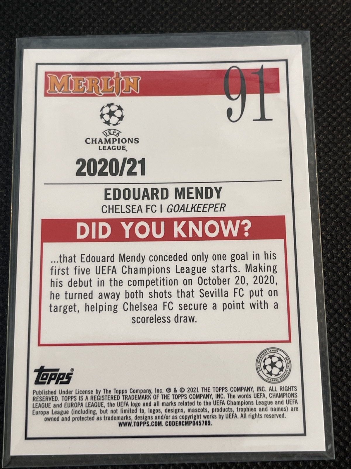 2020-21 Topps Merlin Chrome Base Rookie #91 Edouard Mendy – Chelsea FC RC