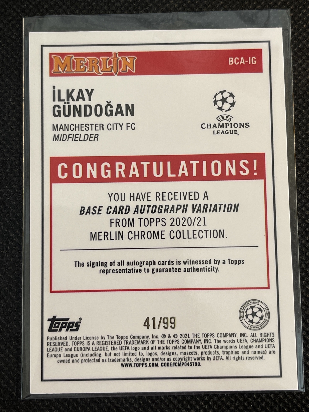 2020/21 Topps Merlin Chrome UEFA Ilkay Gundogan Rookie Auto Silver Mojo #d/99