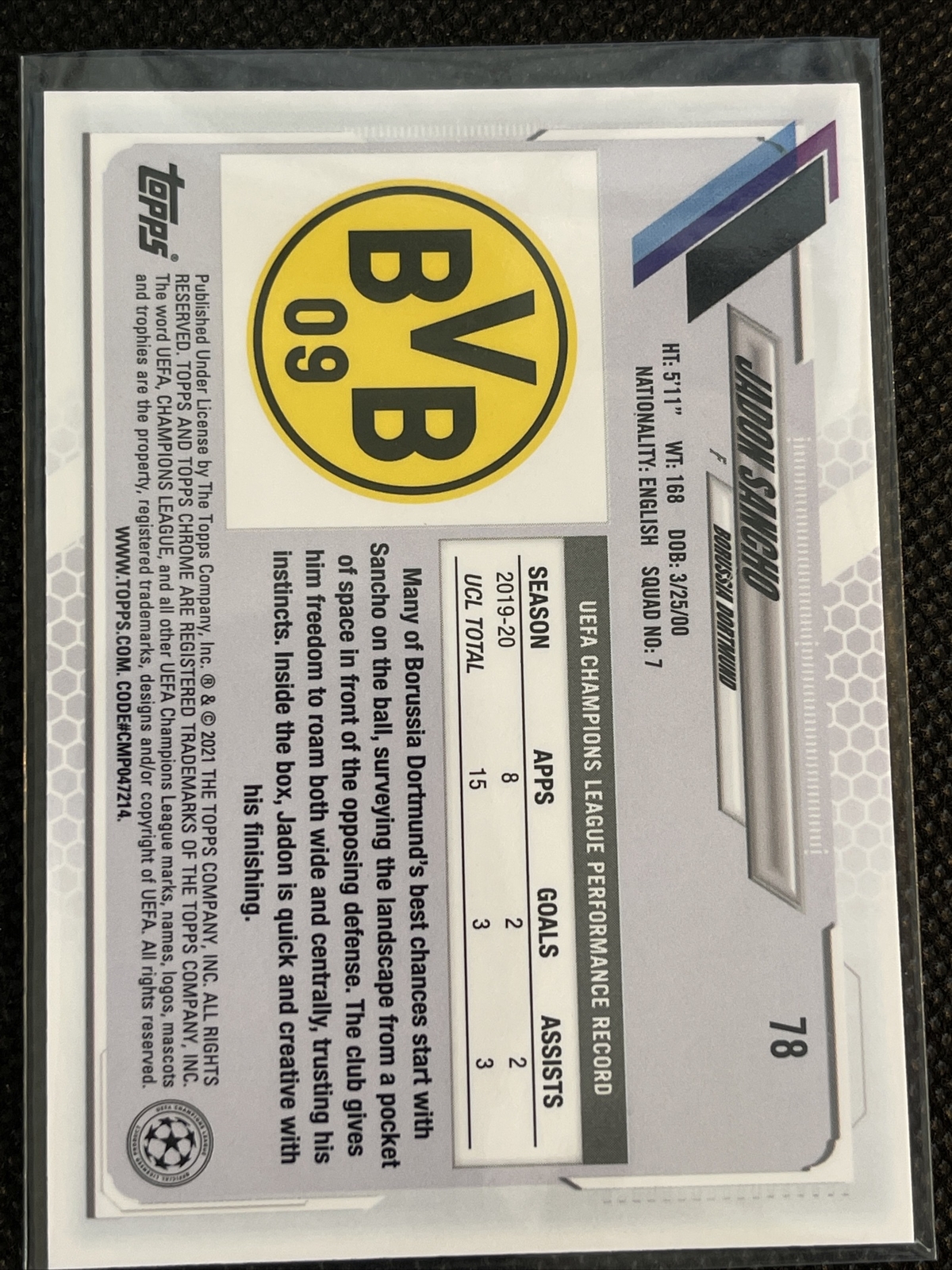 2020-21 Topps UEFA Chrome Sapphire – Jadon Sancho Base #78