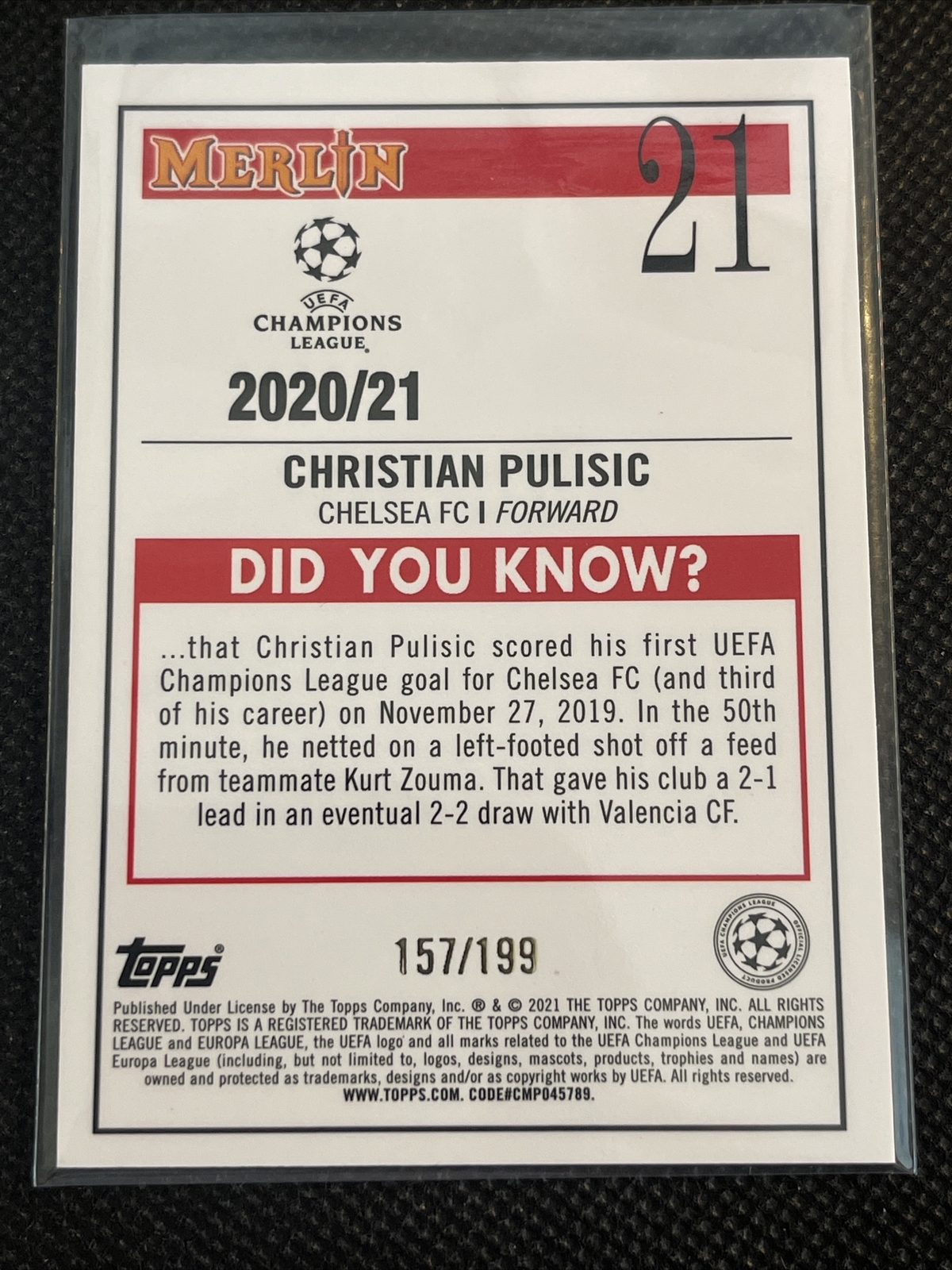2020-21 Topps UEFA Merlin Christian Pulisic #21 Aqua Chrome /199 #21