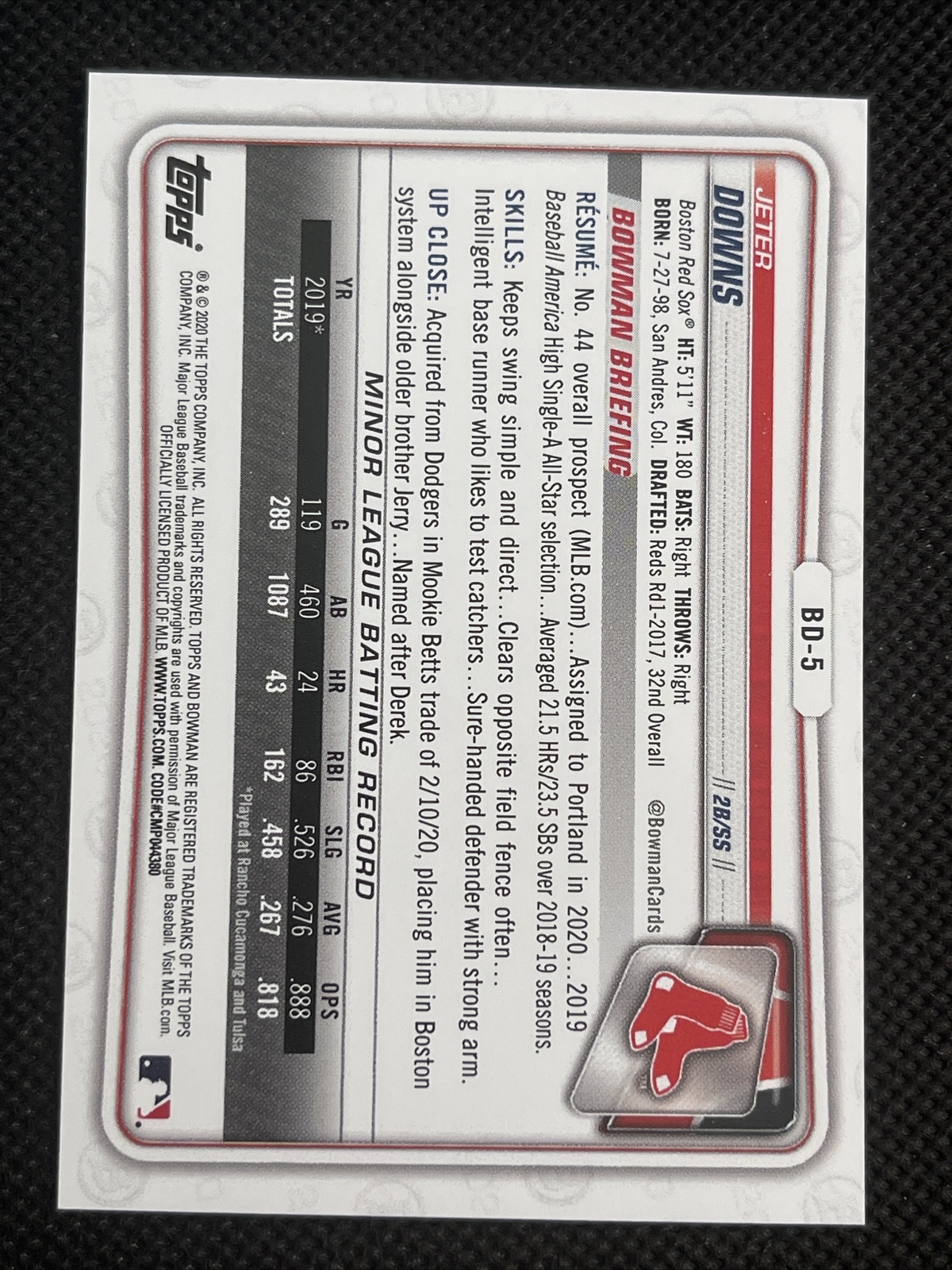 2020 Bowman Draft First 1st Edition Jeter Downs Red Sox