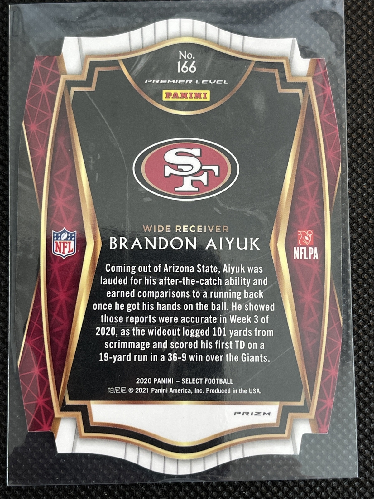 2020 Panini Select Brandon Aiyuk RC Orange Prizm Die Cut Premier Level #166