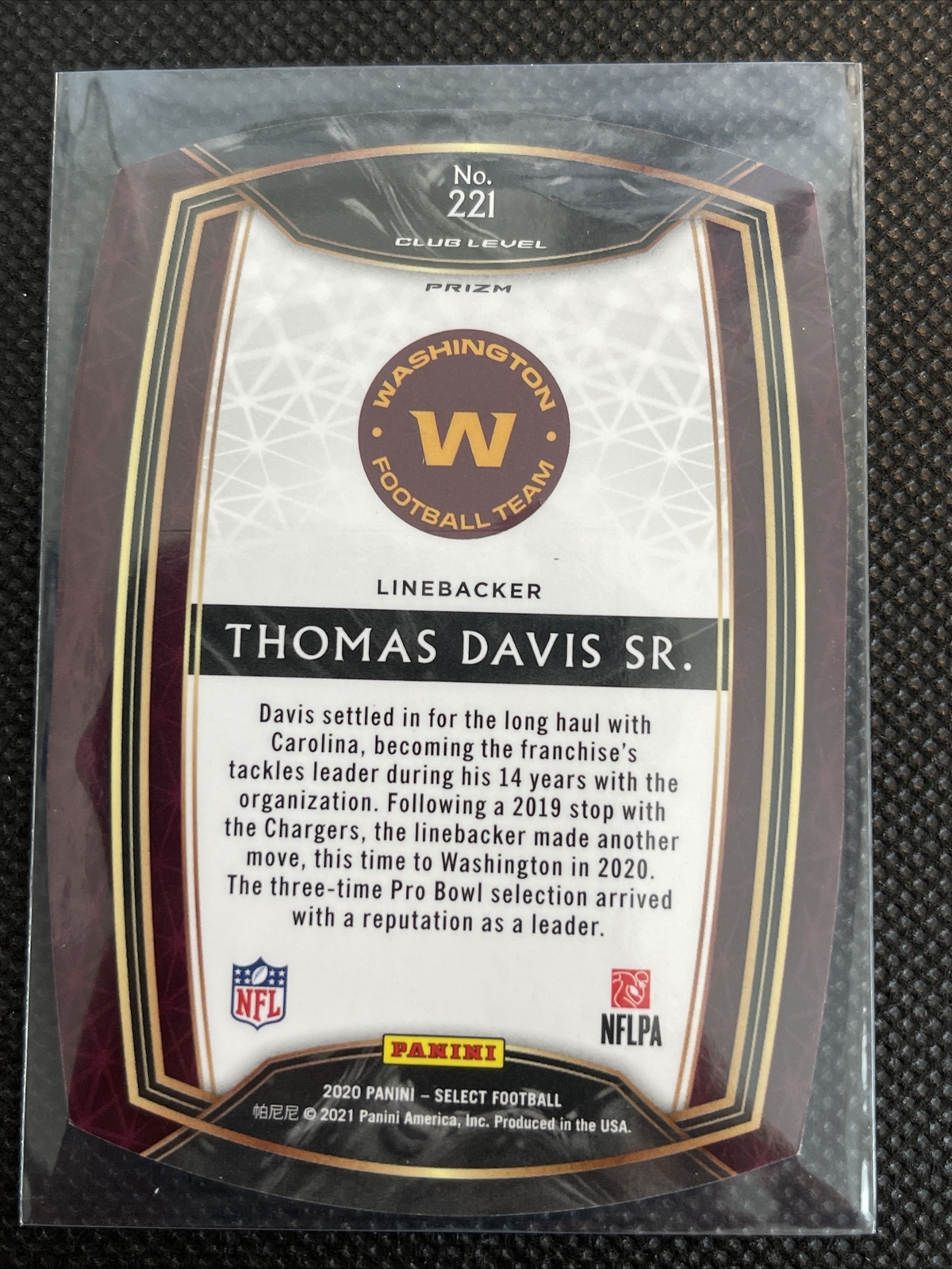 2020 SELECT THOMAS DAVIS SR. CLUB LEVEL Blue Die Cut Panthers Redskins HOF SP
