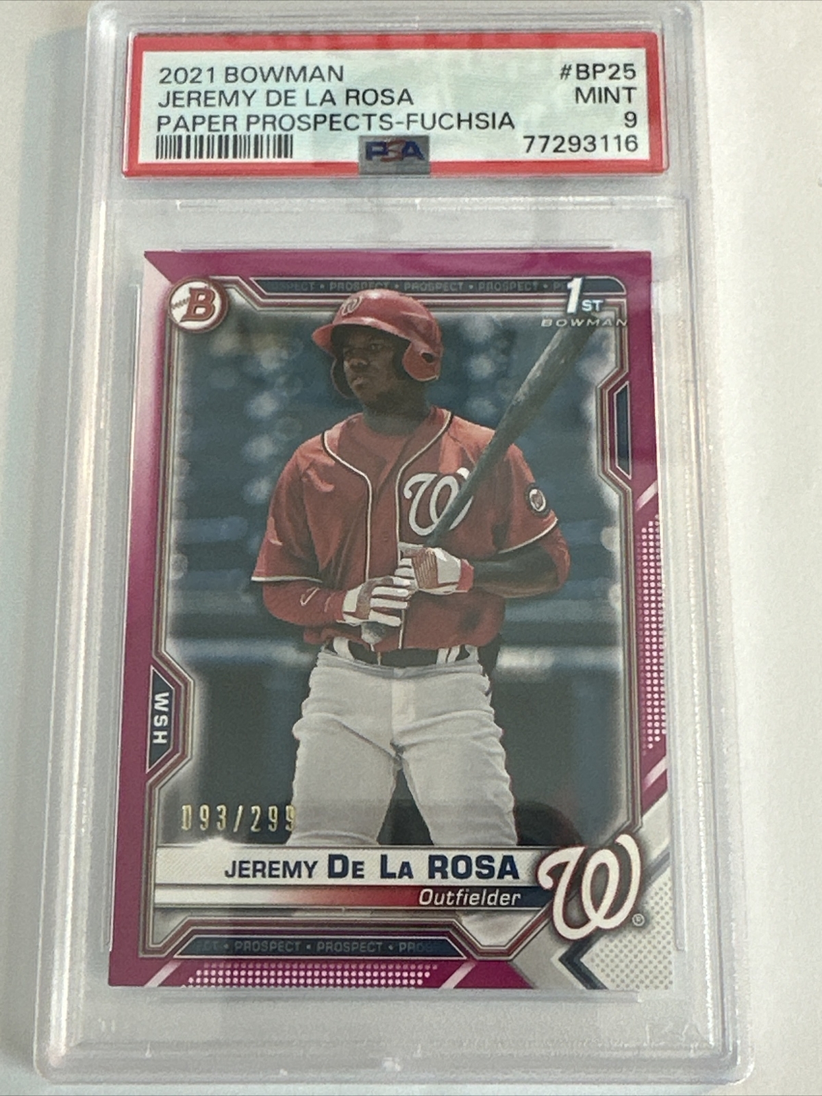 2021 Bowman Chrome Fuchsia Paper /299 Jeremy De La Rosa #BP25 PSA 9 Nats. Condition is Graded. Shipped with USPS First Class.