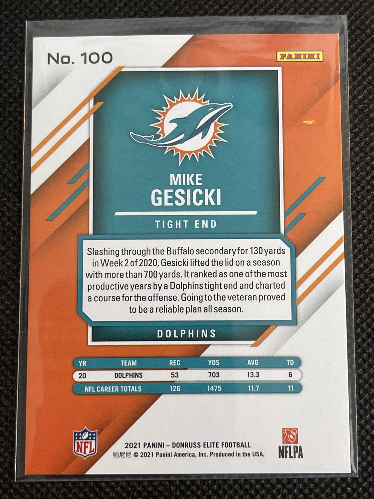 2021 Donruss Elite Mike Gesicki Base Status Parallel #/275 Dolphins