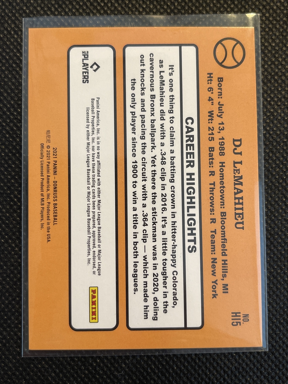 2021 Donruss Highlights DJ LeMahieu /999 #HI5 Gold