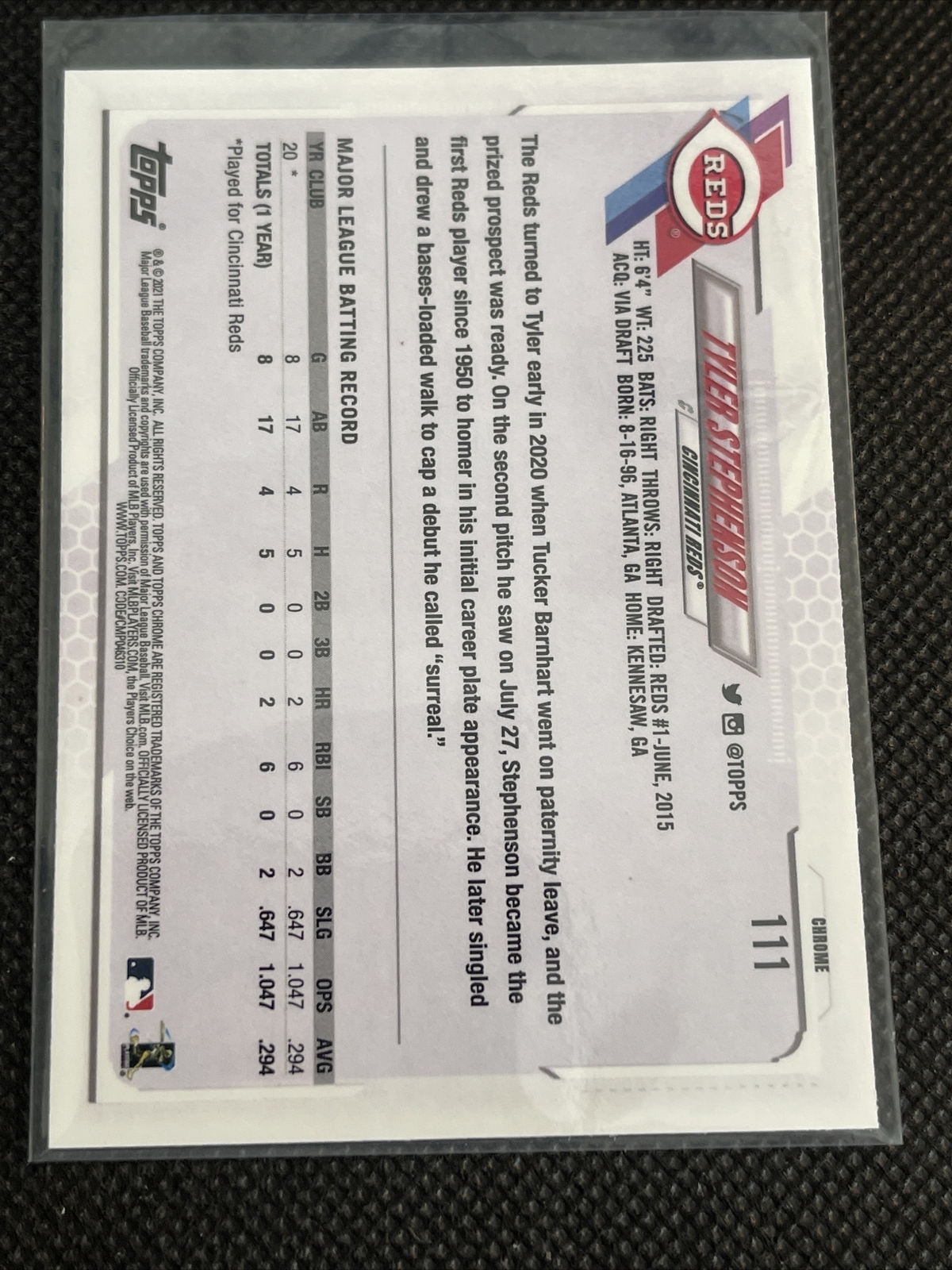 2021 Topps Chrome Baseball #111 Tyler Stephenson RC – REDS