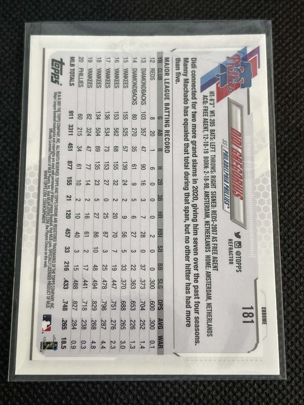 2021 Topps Chrome Didi Gregorius Sepia Refractor Philadelphia Phillies #181
