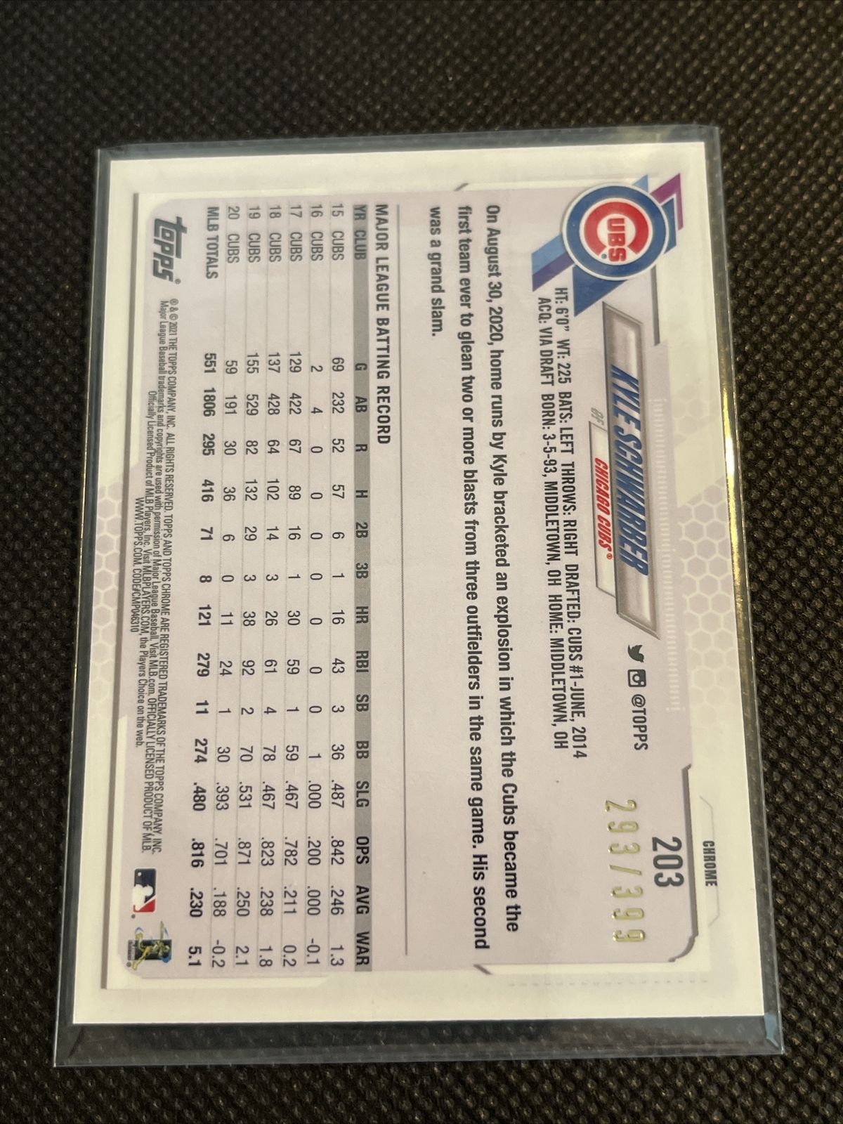 2021 Topps Chrome Megenta Refractor #203 Kyle Schwarber #/399 Chicago Cubs