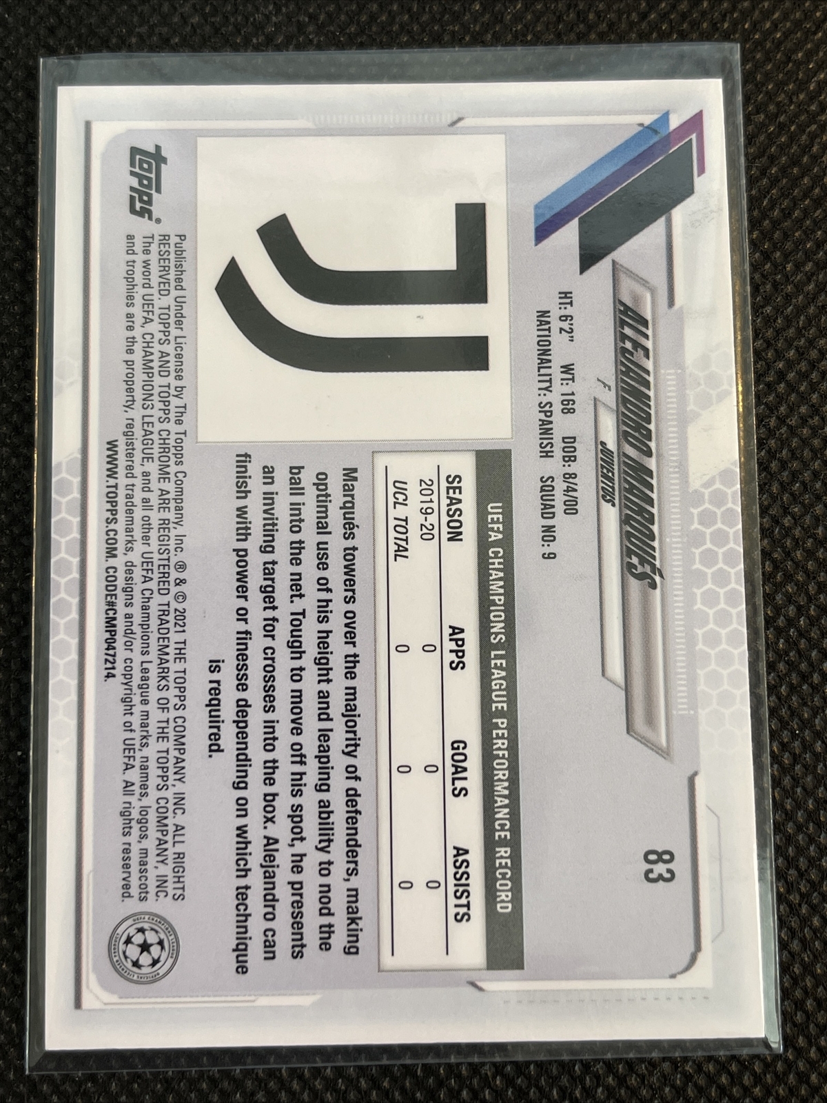 Alejandro Marques – 2020-21 Topps Chrome UEFA Champions Sapphire Rookie RC Base