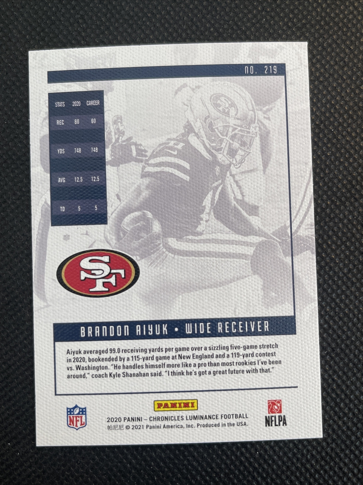 Brandon Aiyuk 2020 Panini Luminance Rookie TEAL #219 Chronicles 49ers Parallel