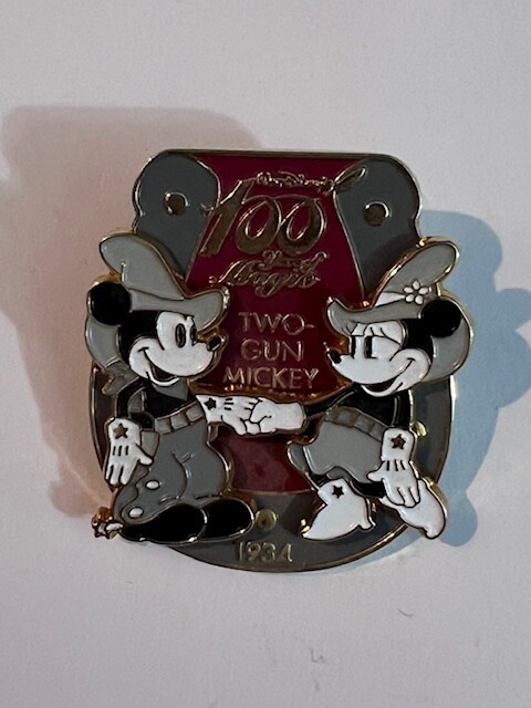 Disney Japan Two Gun Minnie Mickey 100 Years Of Magic Cowboy Horseshoe Pin (D1)
