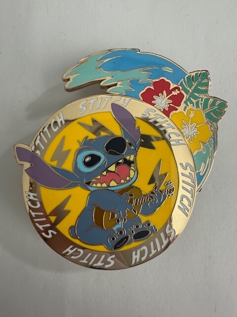 Disney Licensed Japan Stitch Playing Guitar Flower Hawaii Island Spinner Pin (B2