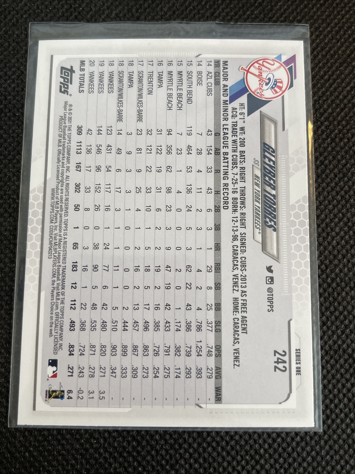 Gleyber Torres 2021 Topps Series 1 Silver Rainbow Foil #242 New York Yankees