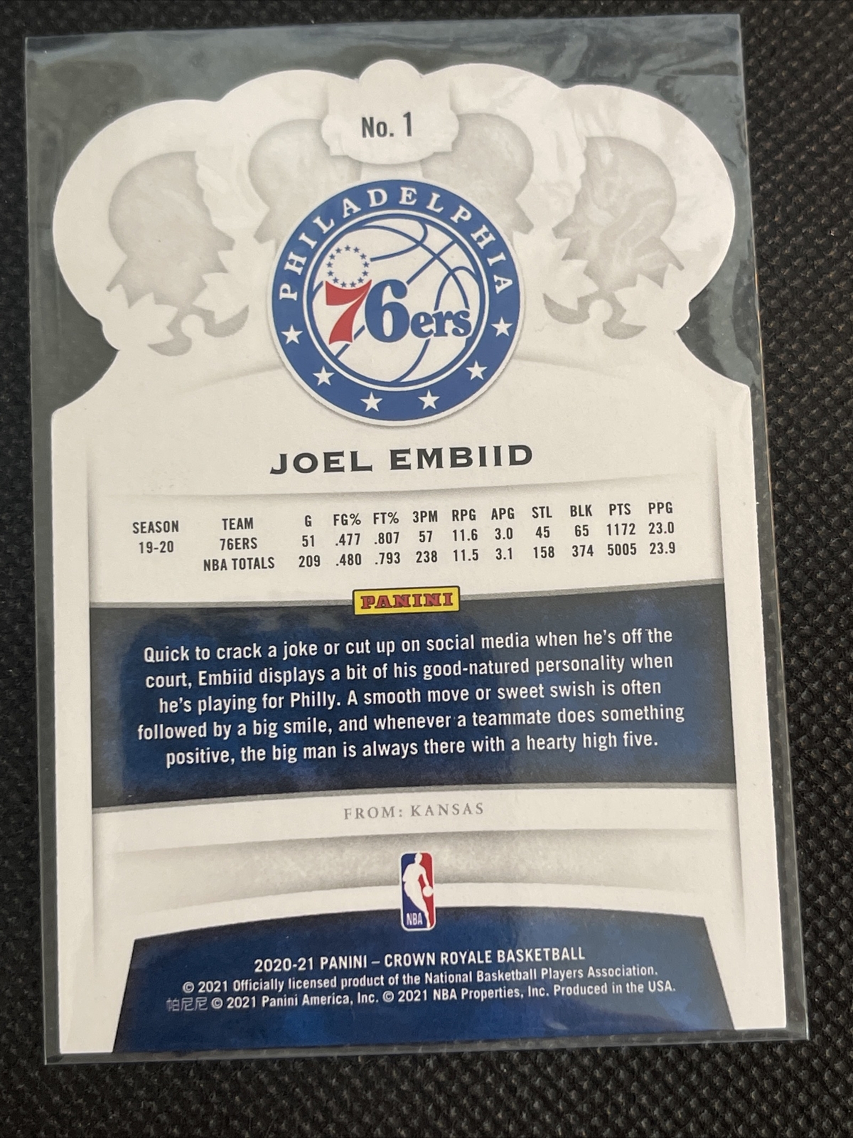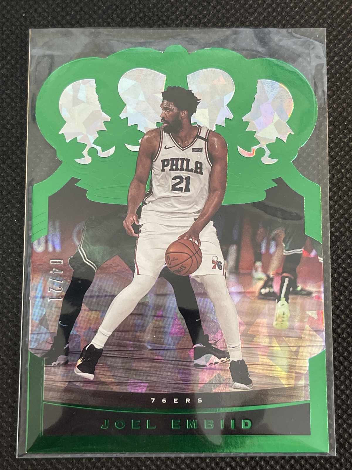 Joel Embiid 2020-21 Crown Royale Green Parallel /21 Philadelphia 76ers FOTL