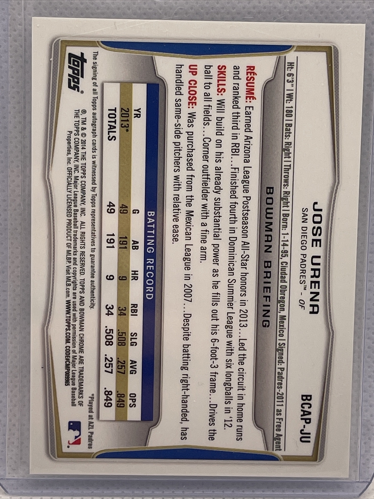 Jose Urena 2014 1st Bowman Chrome Auto Autograph BCAP-JU