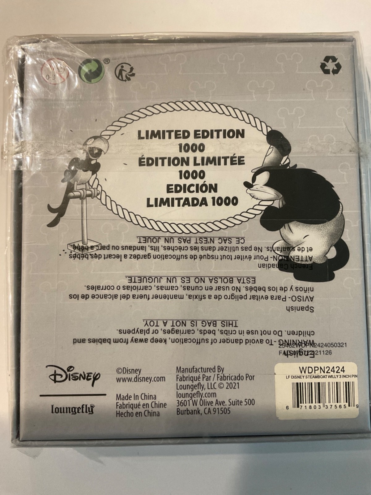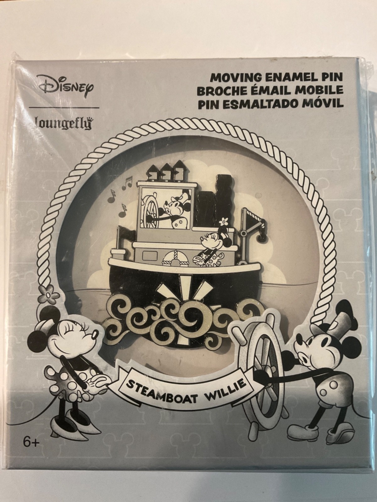 Loungefly Disney Steamboat Willie 3" Moving Enamel Pin Mickey Minnie LE 1000 B