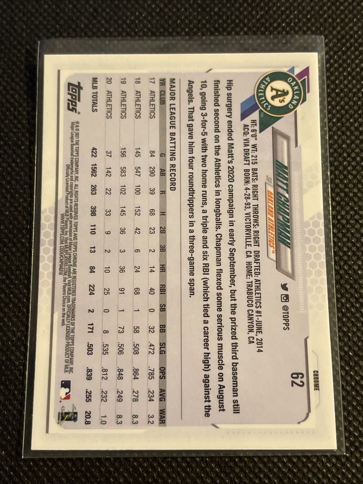 Matt Chapman 2021 Topps Chrome Prism Refractor Atheltics